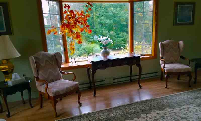 The Chapel may be personalized with the arrangement of flowers and the rearrangement of our beautiful Queen Anne Furniture.